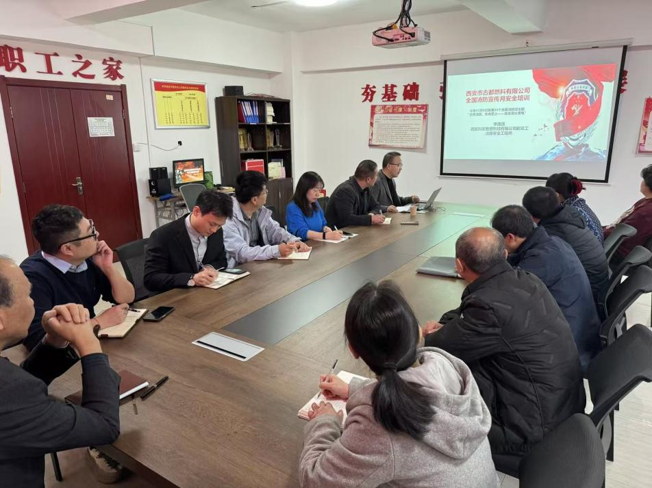 在第34個(gè)全國(guó)消防日到來之際,為全面提升職工消防安全意識(shí)與應(yīng)急能力,11月7日,以“全民消防、生命至上——安全用火用電”為主題,邀請(qǐng)西安科安智盾注冊(cè)安全工程師李強(qiáng)強(qiáng)進(jìn)行消防安全知識(shí)培訓(xùn)。燃料公司、物鴻公司全體干部職工參加。
